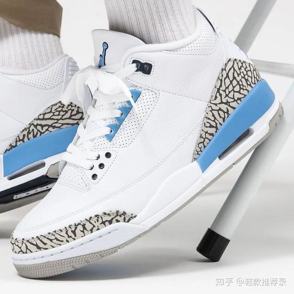 经历AJ2的低谷,在乔丹与耐克决裂之际,AJ3横空出世。爆裂纹,起点设计都让AJ3成为跨时代篮球鞋,乔丹穿着AJ3完成罚球线起跳历史一扣。除了功能在当时一众球鞋中脱颖而出,还有乔丹logo的出现和北卡配色(乔丹出自北卡)。可以说是情怀满满,意义重大。