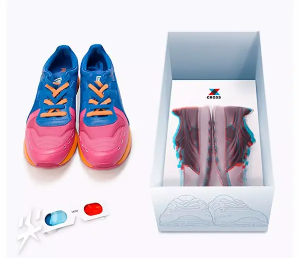 设计师George Lin为Cross设计了一款富有现代感的鞋盒。据说鞋盒的灵感来自光学幻觉,基于该运动鞋的颜色多,视觉上给人一种虚幻的感觉,看着鞋盒一时难以辨别包装盒内是否放有鞋子。