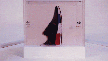 今年,在阿迪达斯旗下爆款鞋款NMD R2上市前夕,阿迪达斯定制了3个超限量的互动装置鞋盒,并将NMD R2与大疆无人机共同搭载其中,送给陈奕迅、余文乐、彭于晏3位炙手可热的潮流明星。