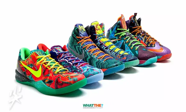 同样的情况出现在多种颜色的multi color上,例如耐克篮球「What The」系列的鞋盒上也必须写上三种颜色。