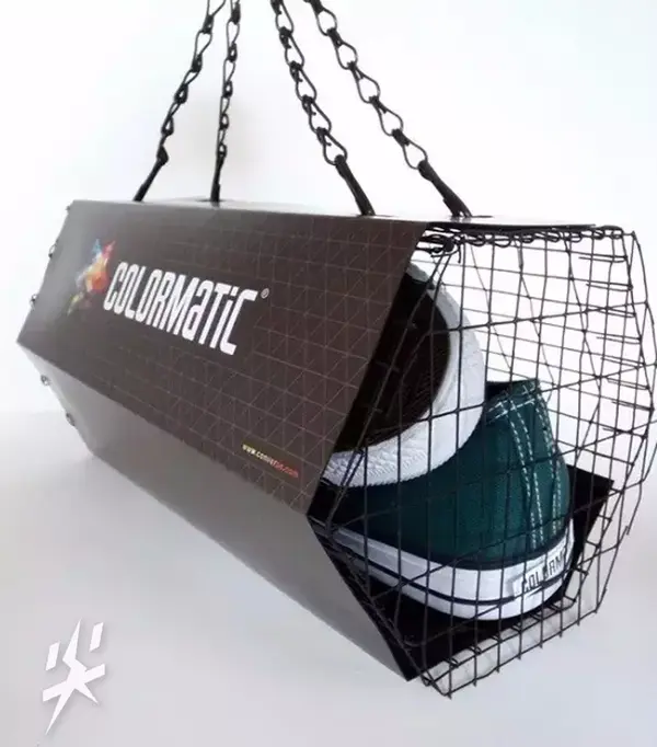 这样的设计不仅方便消费者更直观地查看鞋子的款式,同时还能通过两边的标签确认尺码等信息。值得一提的是,Viupax鞋盒还可以根据需要采用特殊的涂装,在不依靠其他工具的情况下,变身成一个玩具。