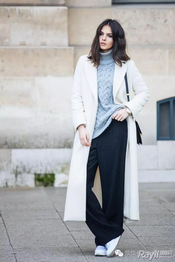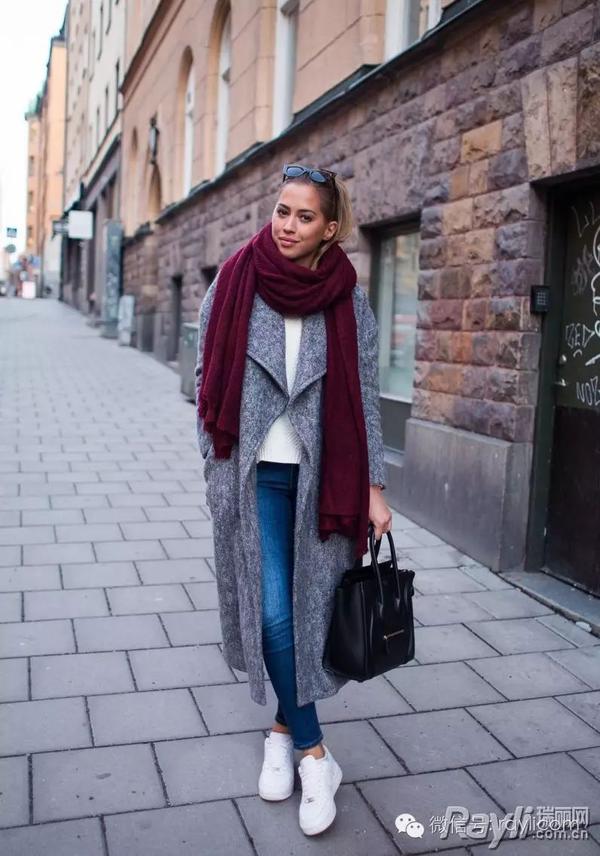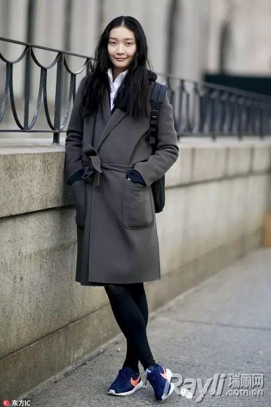 大多数人都会在冬天选择纯色系、冷色调的大衣,这必然会给人死板的印象。如果配上一双减龄的球鞋,便会使自己马上活泼起来。