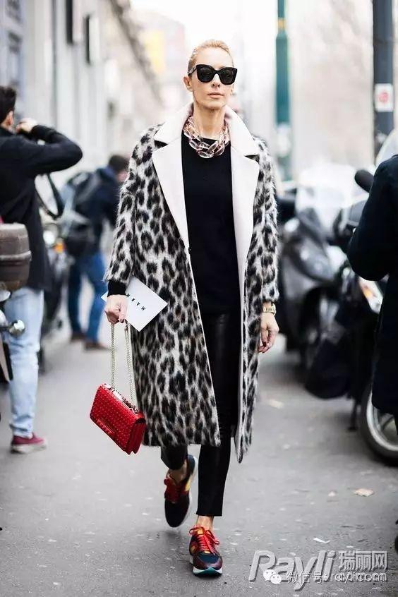 深色系的球鞋在冬天的吃香程度可以体现在,它可以与挑人的豹纹无缝衔接,如若搭配的是小白鞋,就会给突兀的感觉,在色彩搭配上并不和谐。