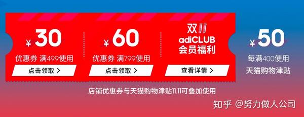 那么爸爸的敌人这边呢,阿迪的优惠基本和nike一样,只是少了10元无门槛优惠券。