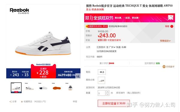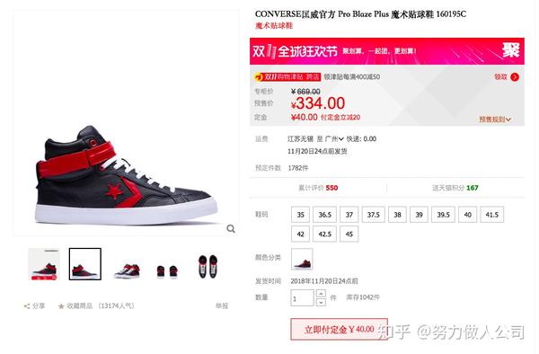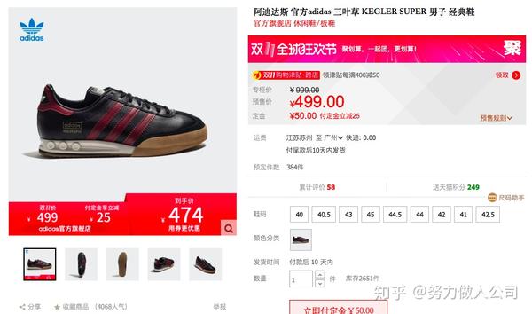 这鞋子参与定金翻倍活动,所以也就是说,付了定金40,尾款减80,就只剩下279,到手就是319。那如果你再选择一个一个199的卫衣,那么卫衣加鞋子,就只要418到手,再减购物津贴就只要409!!