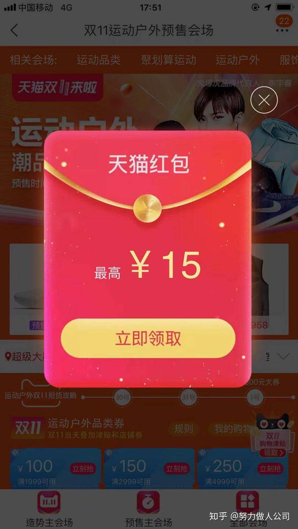 那么今年的双十一有什么优惠呢?我们先来了解一下官方优惠,今天天猫官方推出的优惠就是400减50,800-100,1200-150,这个优惠可以跨店使用。同时双十一还有购物津贴,就是登陆随机抢红包那种,天猫店都可以使用这个优惠。