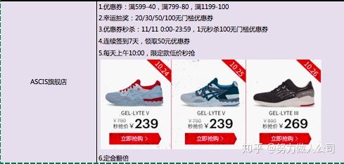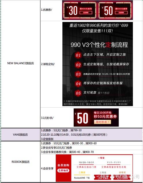 最后附上表格清晰展示各店具体优惠,表格里还有一些文章没有讲到的牌子,像是vans以及asics,如果你不喜欢我推荐的款式,你可以根据这个优惠表去找款。