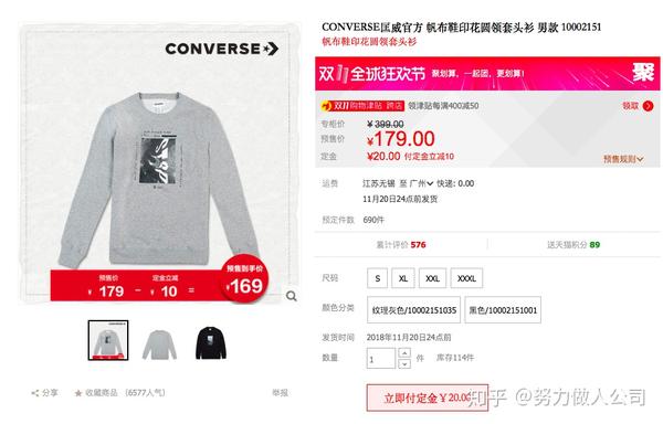 因为匡威主要都是打折扣款,比较难凑到400满减,但是没关系你多买一件卫衣就可以了,匡威的卫衣基本都还不错的。这样算下来鞋子的到手价是316,衣服的到手价是169,两个加起来又可以减去50元,加上购物津贴9元的话,就等于426就可以拿走一双鞋和一件卫衣了。