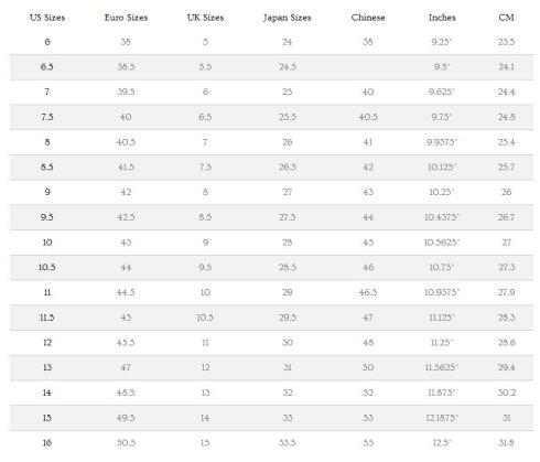 别以为知道了这些海淘鞋子就可以高枕无忧了!在此,还是要提醒各位,同一尺码出自不同品牌也会有差别,买的时候可长点心~建议参考网站的size chart
