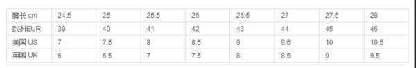 那么,US9 = 27cm + 0.5厘米 = 27.5cm(鞋垫长度)