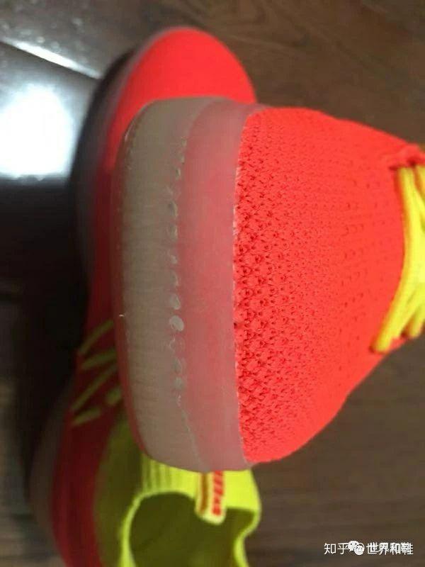 拿到实物后比想象中的要轻许多,毕竟通体是编织鞋面。唯一加重的部分是后侧的皮质和大量的缓震材料。
