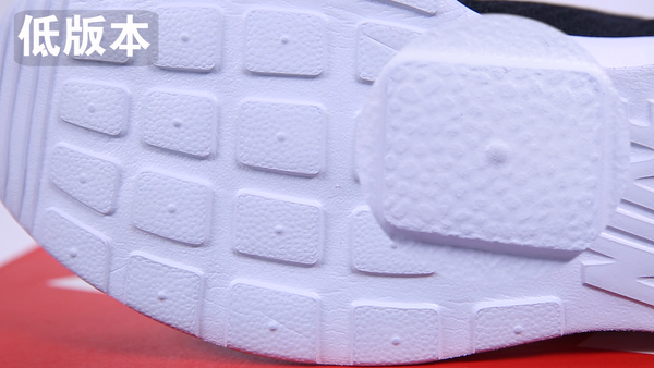 再来看看大底,从外观看,三双nike tanjun的大底材质应该都是一样的,只是在鞋底的花纹方面,低版本略显模糊,而高版本跟正品都很清晰。