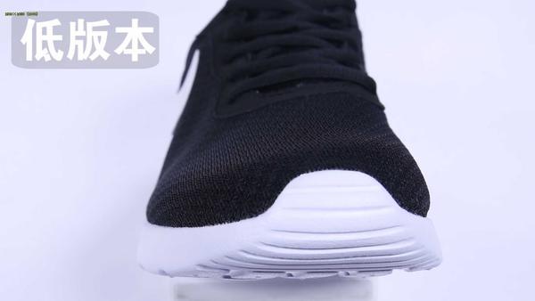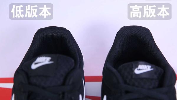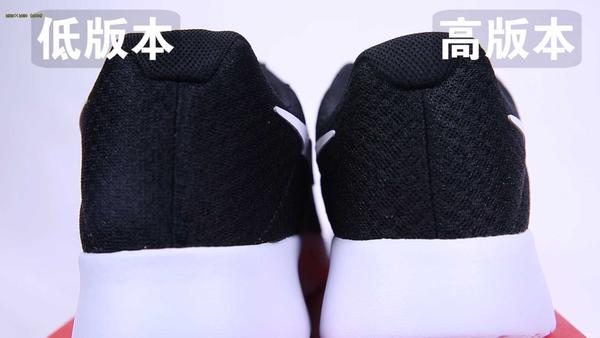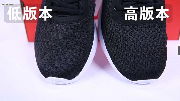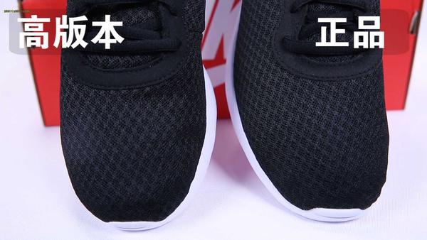 Nike tanjun采用的是针织网眼鞋面,透气性比较好,无论是日常穿搭,还是外出活动都能让你拥有轻盈舒适的体验,低版本的做工明显差了不少,仅仅只是勉强编织出网眼的形状,整体的鞋面会比较厚,透气性较差,而且从正面平视的角度来看,甚至看不出网眼的形状。而高版本的鞋面明显优秀不少,完美COPY了针织网眼鞋面,跟正品对比几乎没有任何差异。