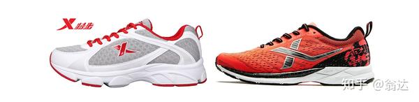 特步的标志性“X”目前有两种在鞋身上的表现形式,右边这个线条更硬的用在竞速鞋款上。