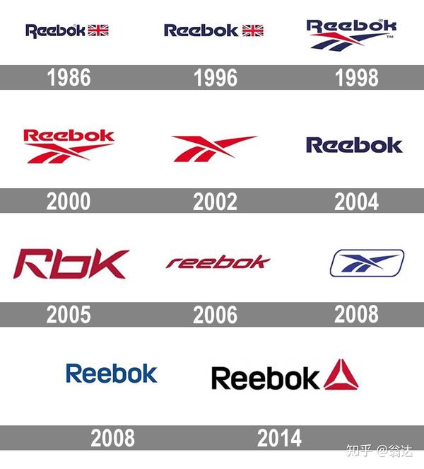 讲到杠杠交叉,也不能不提锐步Reebok家的logo变迁史。