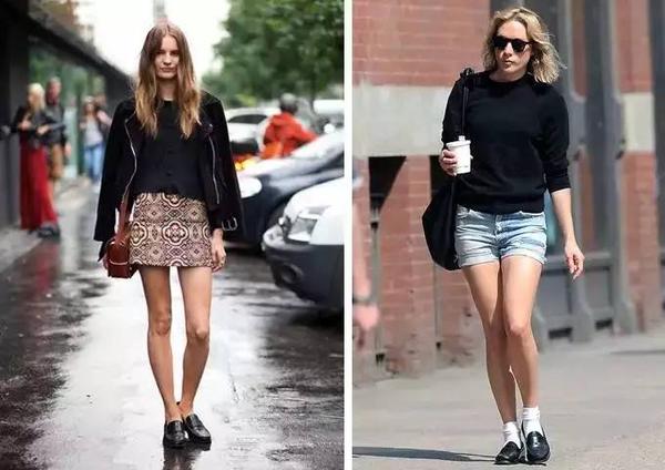 短裤短裙搭配乐福鞋不是问题,配上白袜有一点复古的风格。↓↓↓