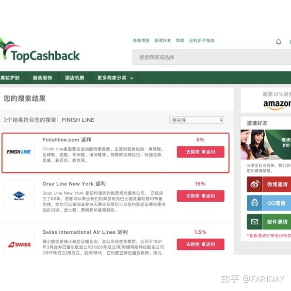 1️⃣先登录海淘必备网站http://www.topcashback.cn,搜索FinishLine,通过topacshback进入美国FinishLine官网购物可以获得5%返利,这样每消费1000元可以返还50元~