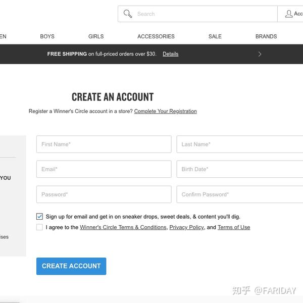 2️⃣进入FinishLine之后点击网站右上角的register注册账号,然后邮箱,名字和出生日期即可~