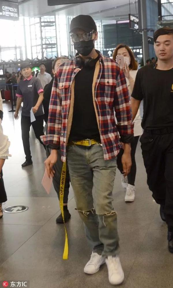 格纹上衣再不是码农专属,不过IT男确实应该学习下陈伟霆的这种穿法。搭配破洞牛仔裤和小白鞋,以及一条当下非常潮酷的长腰带。