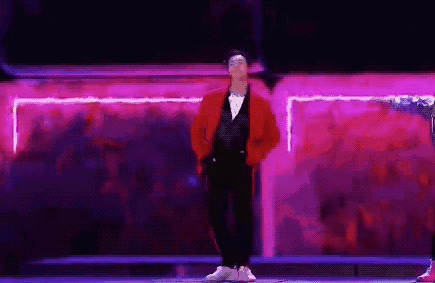 春晚后台,红色休闲西装也是才采用层搭技能,内搭衬衫+T恤。
