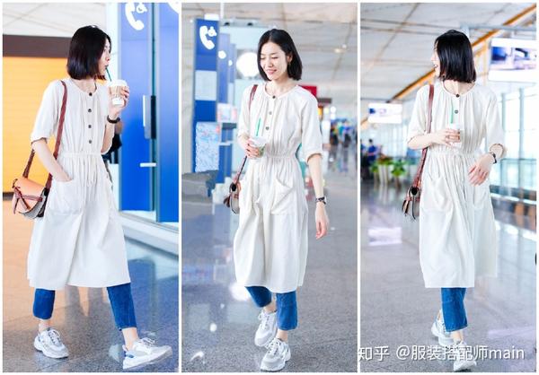 现身机场时的刘雯,依旧是身穿一件简约款的白色T恤,下身则搭配一条水洗蓝色破洞牛仔裤,脚踩白色Puma Thunder Spectra运动鞋,一身穿扮看起来休闲又大方、舒适且自然。话说像是这样的一身搭配,完完全全就是我理想当中的最佳出行着装呢~