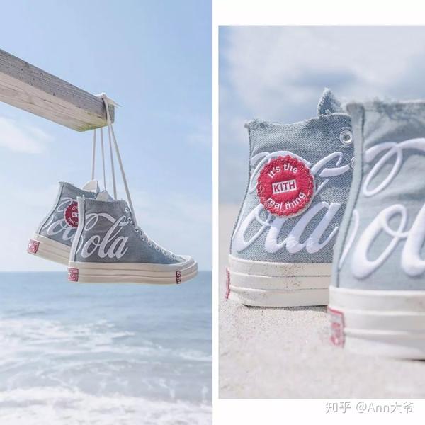 这次以牛仔布料为设计亮点,纯白色Coca-Cola刺绣布满鞋身,和上一次联名的设计其实有点类似,细节处依旧加入了Kith的标志性logo点缀,怪小清新的。