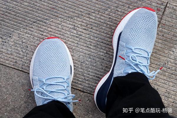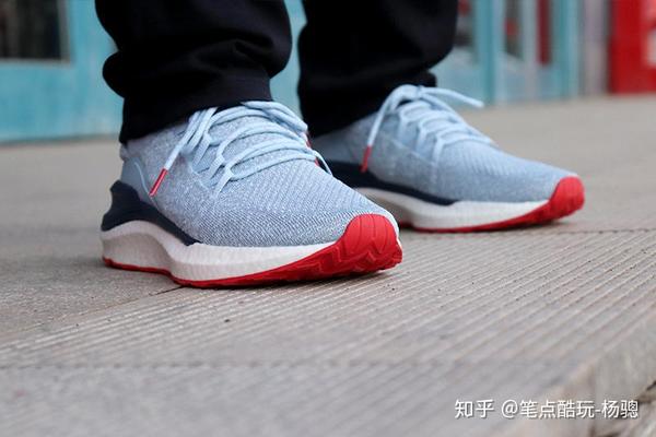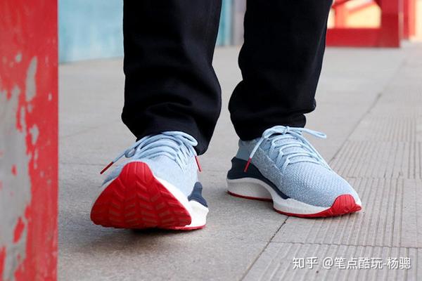 第4代米家运动鞋上脚之后有一个比较明显的体验,那就是相比上一代软了一些,弹性和轻盈度似乎又有增加,感觉跳跃着地时脚掌更舒服了,据说是采用新一代的超轻爆米花云弹技术,再次提升了发泡密度,因此重量再减一些、软弹度反而增加;另外,鱼骨锁紧结构、一片式4D飞织透气鞋面和PU稳定层中底、后跟TPU加固都做足了,再加上这“花蓝”新配色,我咋瞅咋得劲儿。