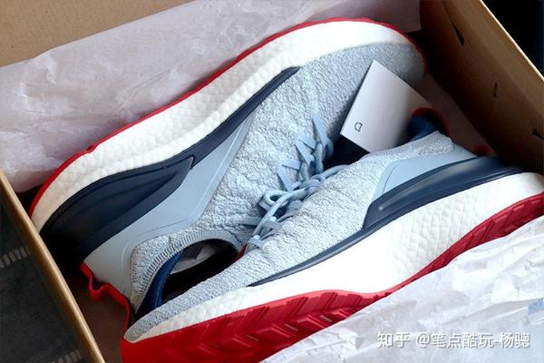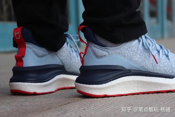 关于米家运动鞋4,我最欣赏的3个地方,一,是加了高密度泡棉的“后领”,之前3代都是直接弹领包裹,有这个更贴脚了;二是后跟中底大底的一系列加固,有意思的是即使增加了TPU PU材料,整重却得到足够好的控制,这里面新一代爆米花云弹技术确实功不可没,但一体融合成型各类部件的轻量化也不可小觑,整体做到如此轻盈+抗扭抗侧翻,非常适合夏季运动。三应该算是颜值吧,上一代我选的是红盒款,这次可能是选了花蓝色外观更容易惹眼一点,不过你还是可以从鞋子侧面和后跟的一些处理看出设计师的小心思。