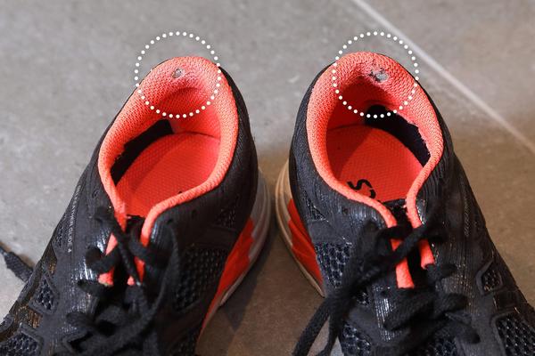 鞋面或鞋身内侧出现裂缝/破洞,跑步中就可能出现意外。鞋身内侧的破洞还可能不断磨擦,造成水泡等问题。
