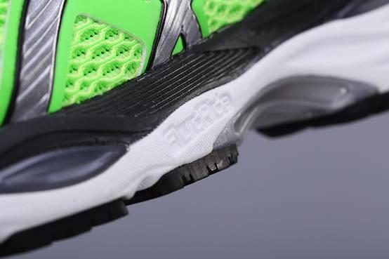 Asics Gel-Cumulus 18这双跑鞋的外观由亮绿色搭配部分黑色,色彩较鲜亮、极为醒目。鞋面采用网布面料,提供了良好的透气性。而Logo采用的PU革材料与鞋带处相连,为跑者提供了良好包裹性,而鞋身柔软的面料又可保证双足在鞋腔内可自由活动。中底采用FluidRide中底,可以有效的将着地时的冲击力转换为推动力。前后足搭载高抗冲缓冲性Gel,出色的避震能力,为跑者带来舒适脚感。