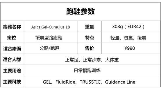 亚瑟士 Gel-Cumulus 18 跑鞋参数如下:
