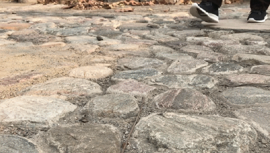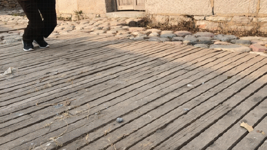 走在凸凹不平的石块路面也不会感觉到特别的硌脚,很稳当;鞋底的颗粒点能够增大附着力,即使在光滑的石面上,也能有效的防滑