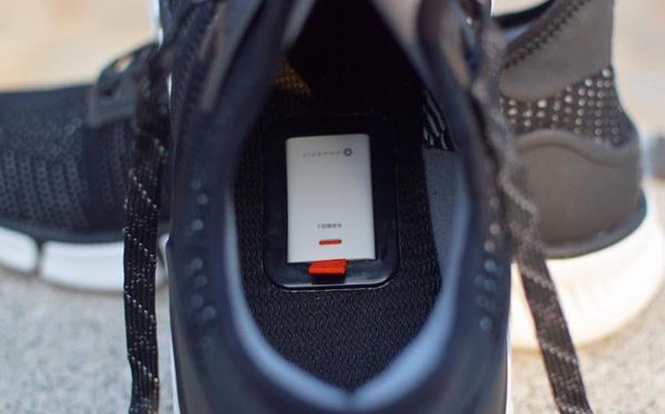 绑定好以后,就需要将芯片放入鞋内(两只鞋垫下面分别有个方形的凹槽),此时需要确认是左脚还是右脚,然后穿上鞋静立几秒钟就会完成绑定