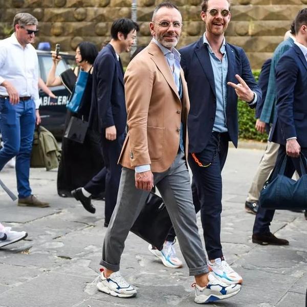 在时尚圈中西装搭配运动鞋的造型一直是焦点,伙伴们对此都有不同的看法,有人觉得西装搭配运动鞋造型整体不协调,也有人认为这就是当下的潮流之一。