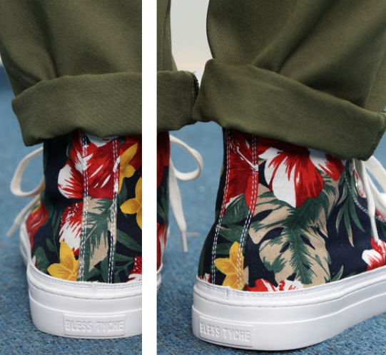 【穿在脚上的夏威夷风情】BLESS的鞋子专注于打造质感,所以不论是材料的选购还是生产制作,都有严格的标准。这款限量夏威夷情侣高帮休闲鞋,采用的是很稀缺的优质日本棉布,相比普通的棉布透气性要更好。鞋身的印花图案很鲜艳,搭配工装短裤或者长裤都很好看,橡胶的鞋底走路很舒适,还有防滑的作用。同样是帆布鞋,这款特别的骚情好色~