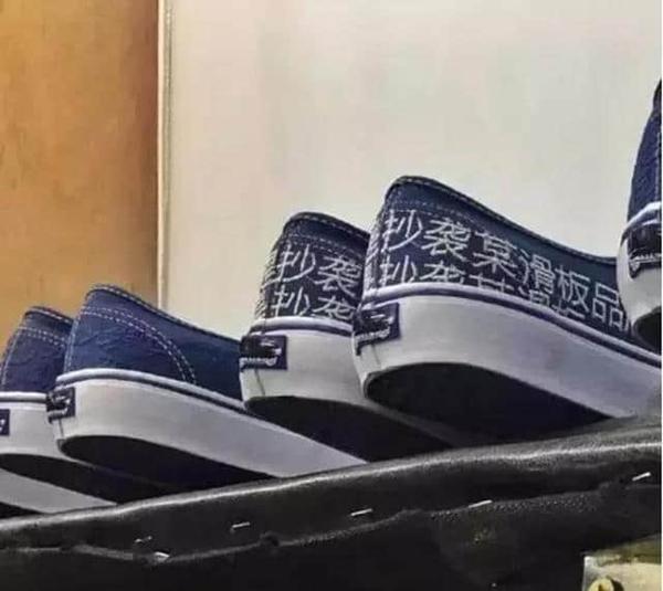【明目张胆的抄袭系列】除了赤裸裸的抄袭元素,PURLICUE另一大魅力在于它简单粗暴的设计元素。PURLICUE的每一个系列都很特别,而且胜在细节。最经典的就是Vans,这款鞋子一看就知道是抄袭了Vans的经典款滑板鞋。鞋面也是相同的帆布材质,配上经典的鞋型,非常耐看。鞋底是橡胶的,所以上脚还是挺舒服的,走远也不会累脚。有意思的是鞋舌和鞋后标都做了涂鸦处理,鞋后跟还刺绣着“这款帆布鞋是抄袭某滑板品牌的”。鞋子无论是做工还是搭配性,都是非常不错的,想要不一样的Vans,可以入手这一款哟~
