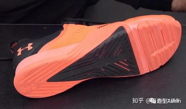 这种鞋的大底采用了UA标志性的三角形设计,旨在促进此位置与地面接触的稳定性。简单的来说,这块区域(大脚趾、小脚趾和脚跟的前部)直接决定了鞋子和人体的稳定。