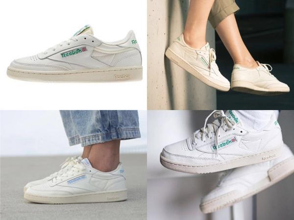 这款是锐步家的经典板鞋系列,陈伟霆代言款。配色十分小清新,皮面不是纯白,而是米白,鞋底是米黄,看起来比较复古。而且皮质超软,网评很高。鞋面透气孔多,一点也不会感到闷脚。