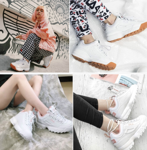 斐乐出名的鞋款,最明显的就是增高效果,而且白+棕的拼接看起来十分复古文艺,有大批的博主明星为其打call。也是很早推出“刀锋”鞋底的品牌,给这双鞋增加了一个亮眼的地方。虽然笨重,但是透气孔也很多,不会闷热,另外配色非常非常多,看起来有点笨笨的,这双鞋的最佳搭配是配一双闷骚长袜子。