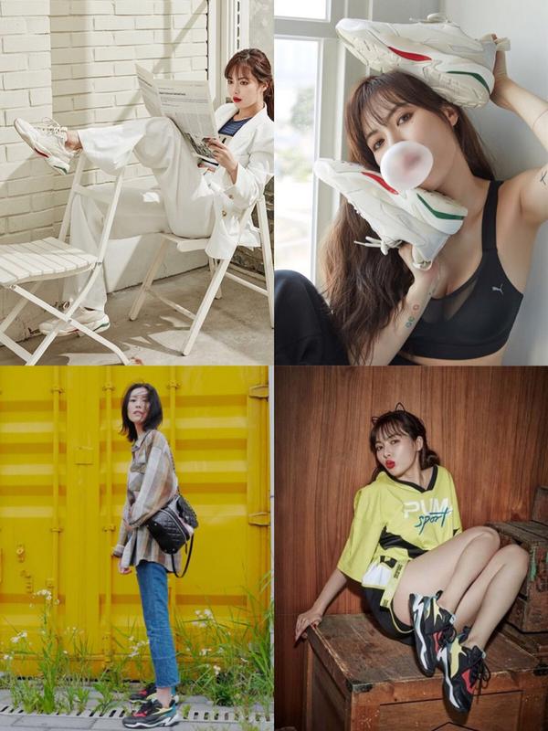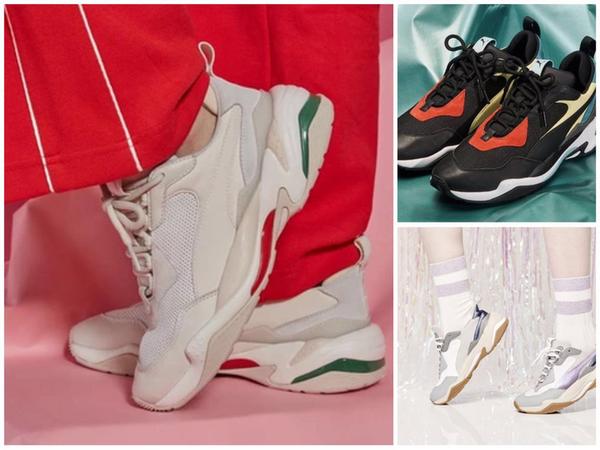 Thunder 系列特别像是巴黎世家triple s的底加椰子500的鞋身,主打绒面革、网眼和皮革材质的拼接,亮色系和浅色系的拼接,所谓是集大牌元素于一身,韩国女星泫雅代言。