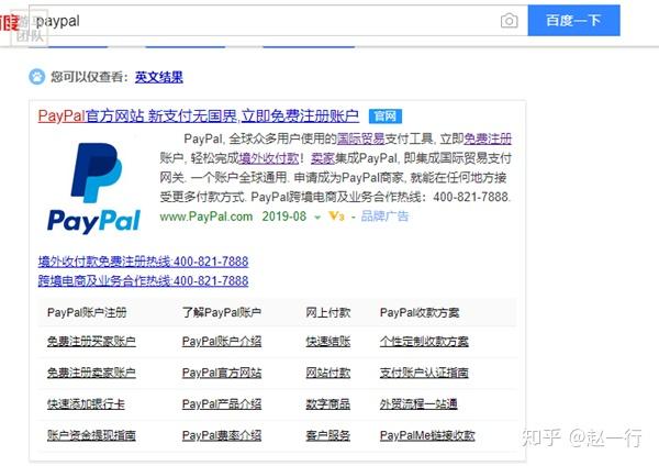 百度搜索“PayPal”,出现的第一网站即为官网,点击进去