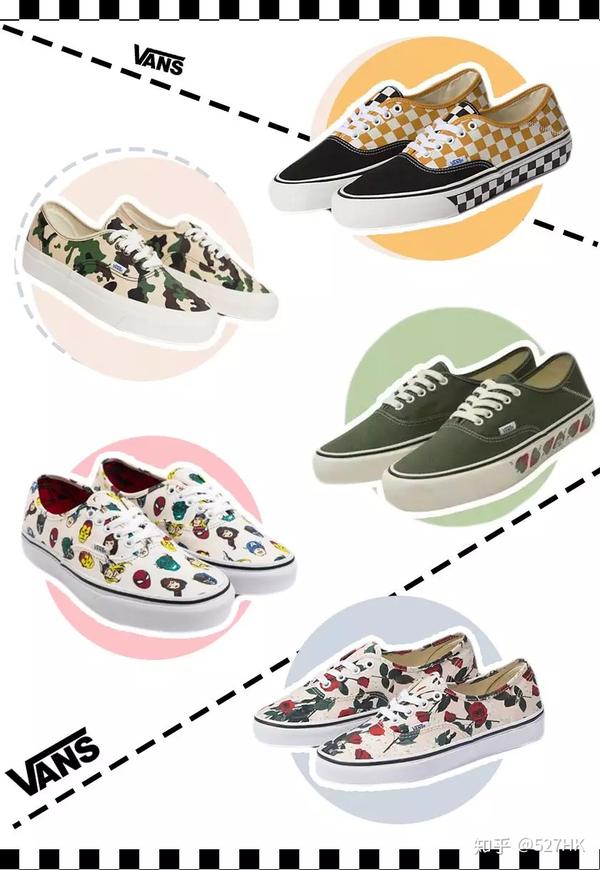 但是近年来VANS也有了很多动作,也常常推出节日限定款以及品牌联名,Authentic也开始有了花里胡哨的配色及图案。