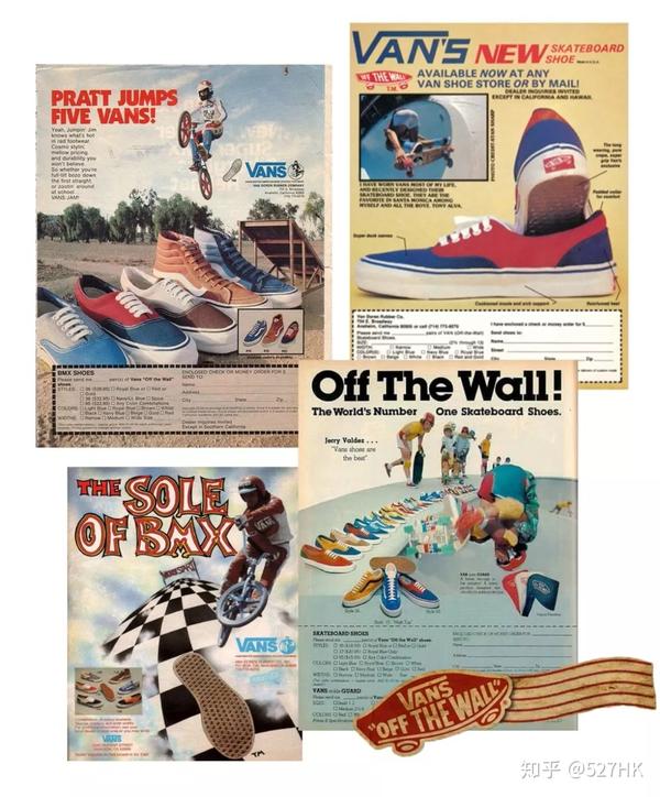 滑板效应带动了VANS品牌,1976年以后Vans鞋后跟上开始采用Off The Wall这个Logo。