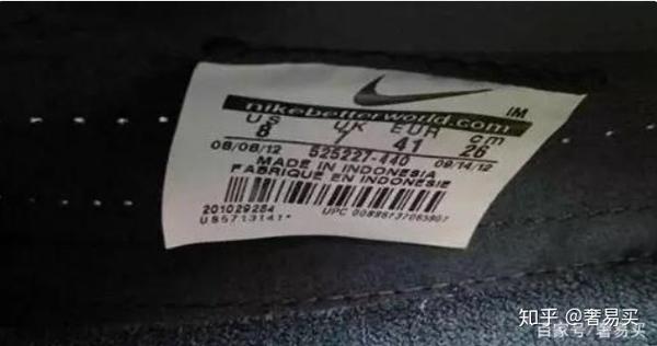 耐克原来的旧鞋标上,左右两边的日期是不在一条直线上的,一般是左高右低,后来在2010年后,耐克换了新的鞋标,给了很多造假的鞋厂一个致命的打击,将左、有两个日期放在了同一个水平面上。