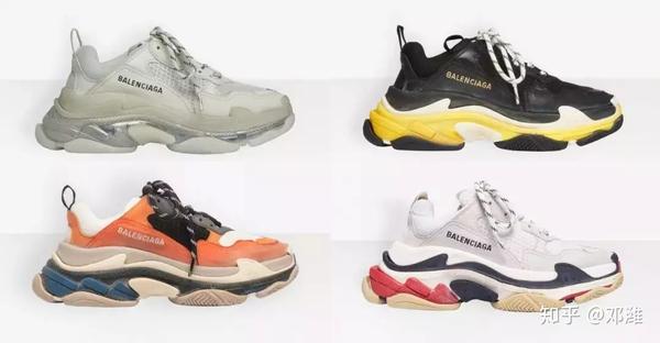 巴黎世家算是老爹鞋的“开山鼻祖”,代表作Triple S从前年火到现在,拥有超厚鞋底和选择多样的复古配色,国内外都经常卖断货。
