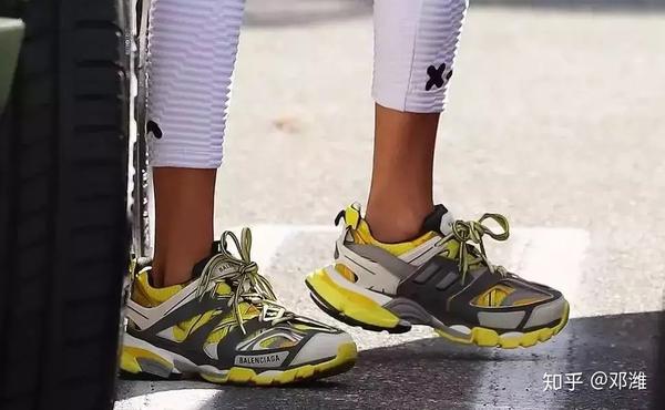 巴黎世家趁热打铁,去年又推出了新款老爹鞋Track,不过因为鞋面过于繁琐,加入了拼接、抽绳等户外元素,整体更像是以前的专业越野跑鞋,因此没有爆红起来。