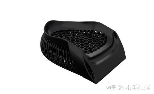 3D打印的鞋跟,而不是整个鞋底,消耗的材料、打印的时间都变少,使得成本降低。