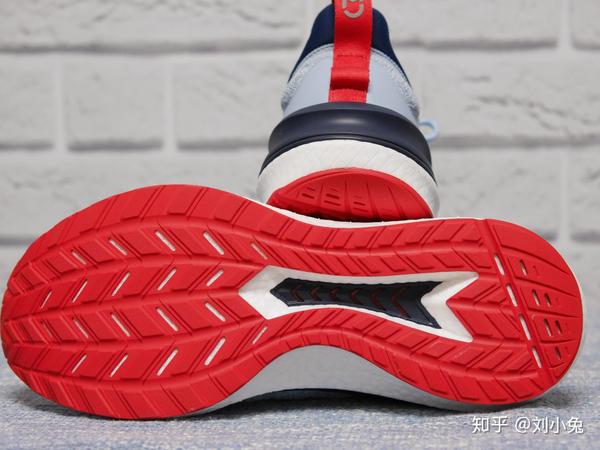 大底方面依然坚持采用全橡胶大底,防滑性能优良,花纹每代也都进行了升级,这次有点类似于汽车轮胎的纹路,来提高抓地能力。