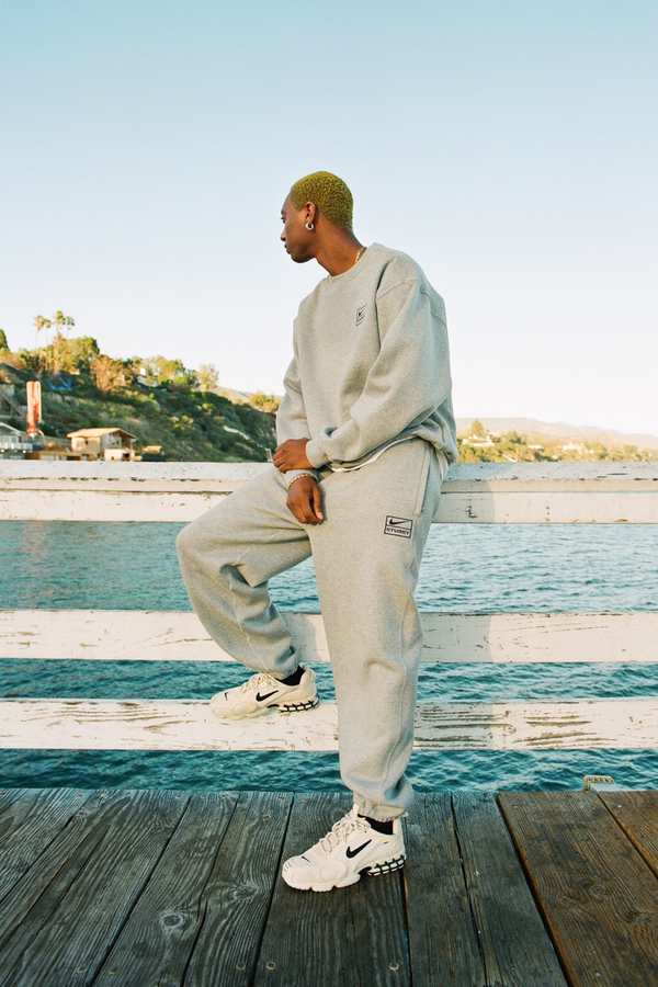 所以今天的主题,并不是和大家讨论这双近期已经被反复提及的 Air Zoom Spiridon Caged 2,反倒是这个系列中的服饰部分,尤其是 Lookbook 中的那套 Sweatsuit(卫衣套装),似乎更符合 Stüssy 本身所具有的街头属性,尽管相比之下它们的「存在感」要低得多。