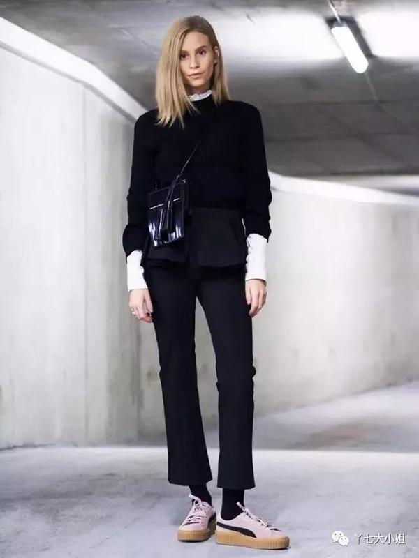 黑色小脚裤是最显瘦的一款,尤其适合配上一款宽松的上装,“上松下紧”的搭配法,既有春天的慵懒随意,又衬托得腿更加细长。▼